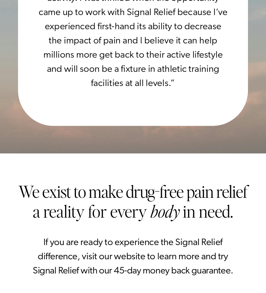 Thank you for supporting Signal Relief We are a community of individuals committed to bringing life and hope back into the lives of those who mean the most to us! From all of us at Signal Relief, thanks for your support! No longer want to receive these emails? Unsubscribe. Signal Relief 1160 Bond Ave. Rexburg, ID 83440 Customer Service 833-572-0403 | | | | |